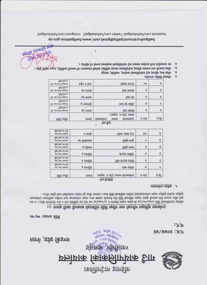 अ.न.मी. सेवा करार सम्बन्धि बडिगाड गाउँकार्यपालिका कार्यालयको सूचना