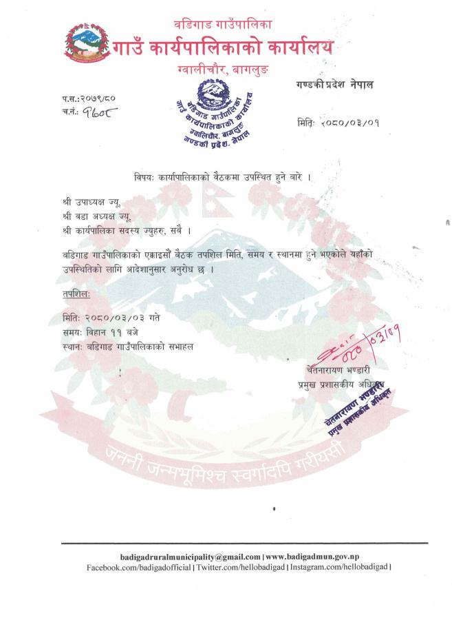 गाउँपालिकाको अत्यन्त जरुरी सुचना