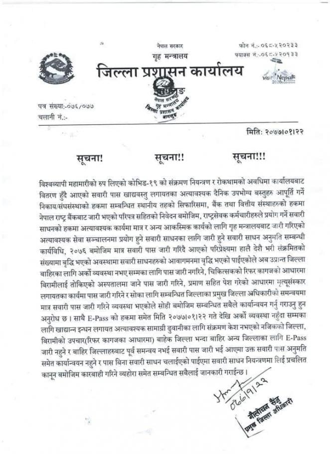 » जिल्ला प्रशासन कार्यालय बाग्लुङको सूचना !!
