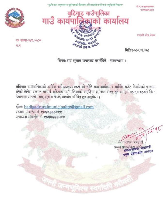 राय सुझाव उपलब्ध गराईदिने सम्बन्धी सूचना !!