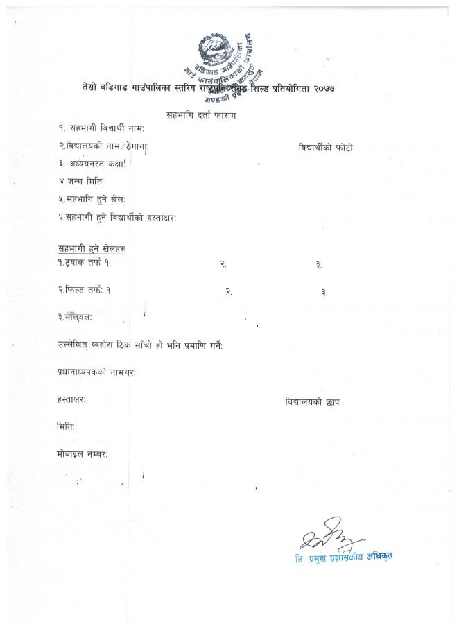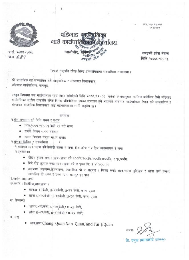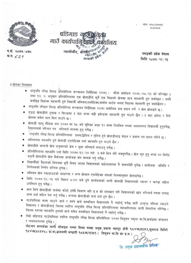 » रास्ट्रपति रनिंङ शिल्ड प्रतियोगितामा सहभागिता सम्बन्धि सूचना !!!!