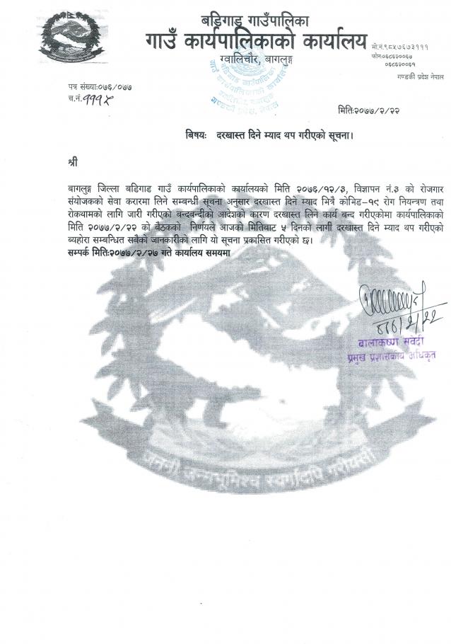 सेवा करार सम्बन्धी बडिगाड गाउँकार्यपालिका कार्यालयको सूचना
