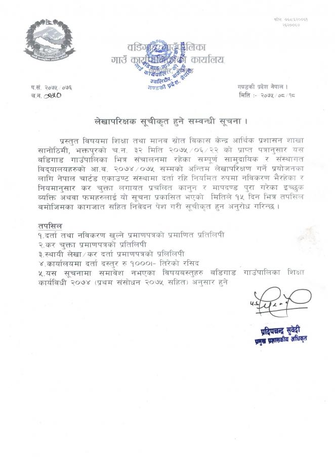 लेखा परिक्षक सुचीकृत हुने सम्बन्धि सूचना |