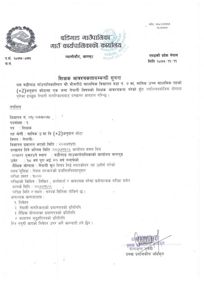 शिक्षक आवश्यकता सम्बन्धि सूचना !!