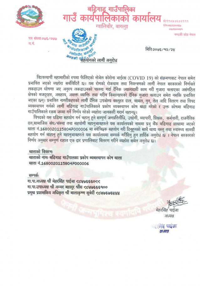 अ.न.मी. सेवा करार सम्बन्धि बडिगाड गाउँकार्यपालिका कार्यालयको सूचना