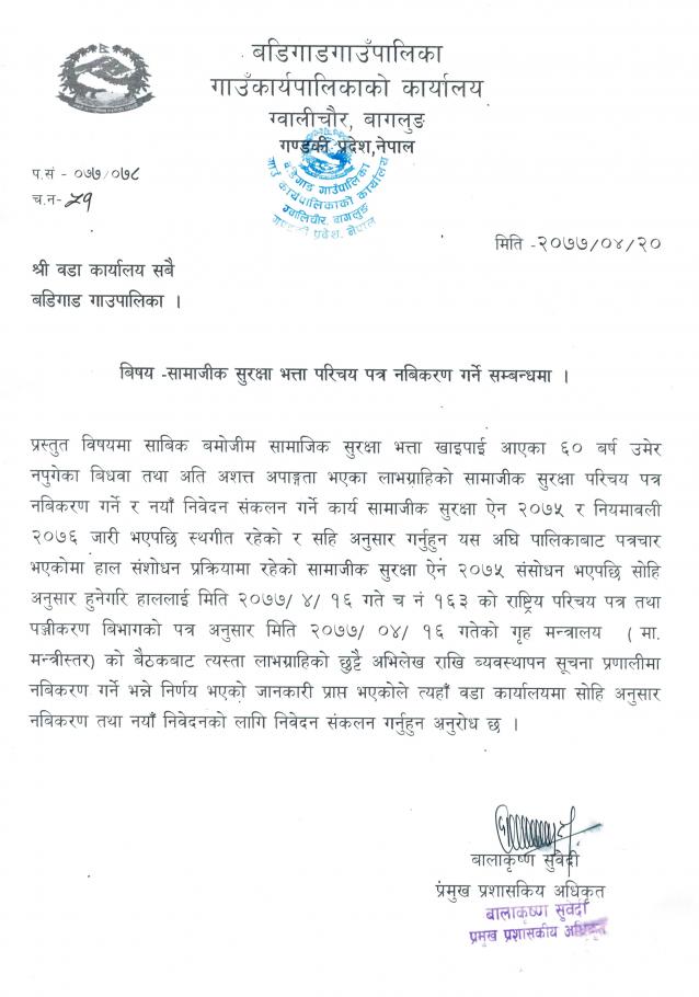 सामाजिक सुरक्षा भत्ता परिचयपत्र नविकरण गर्ने सम्बन्धि सूचना !!