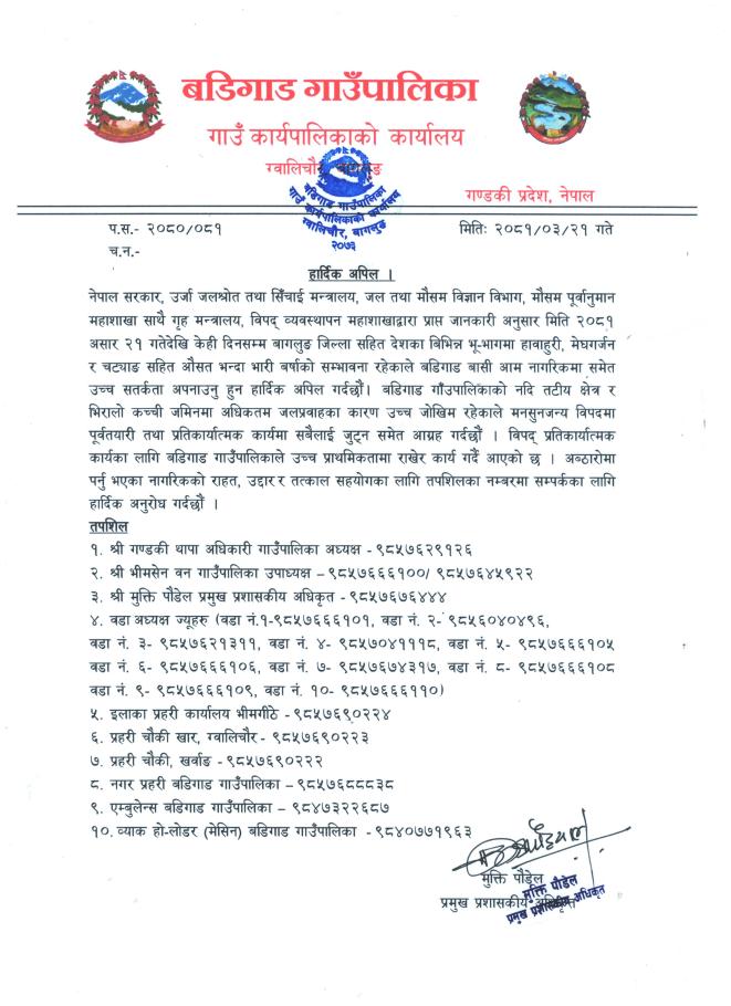 गाउँपालिकाको अत्यन्त जरुरी सुचना