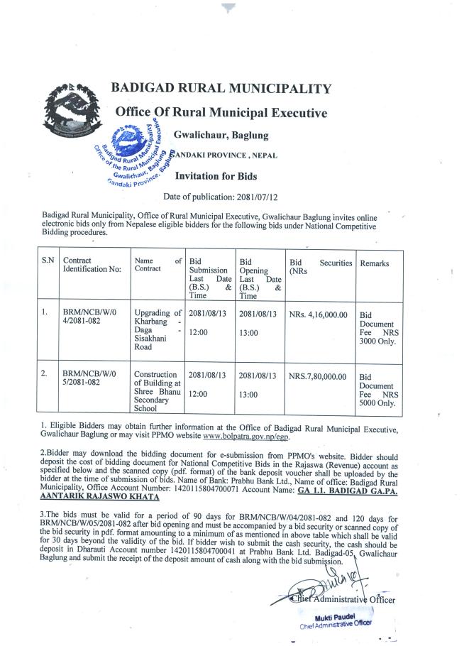 » Invitation for bids (2081/07/12)
