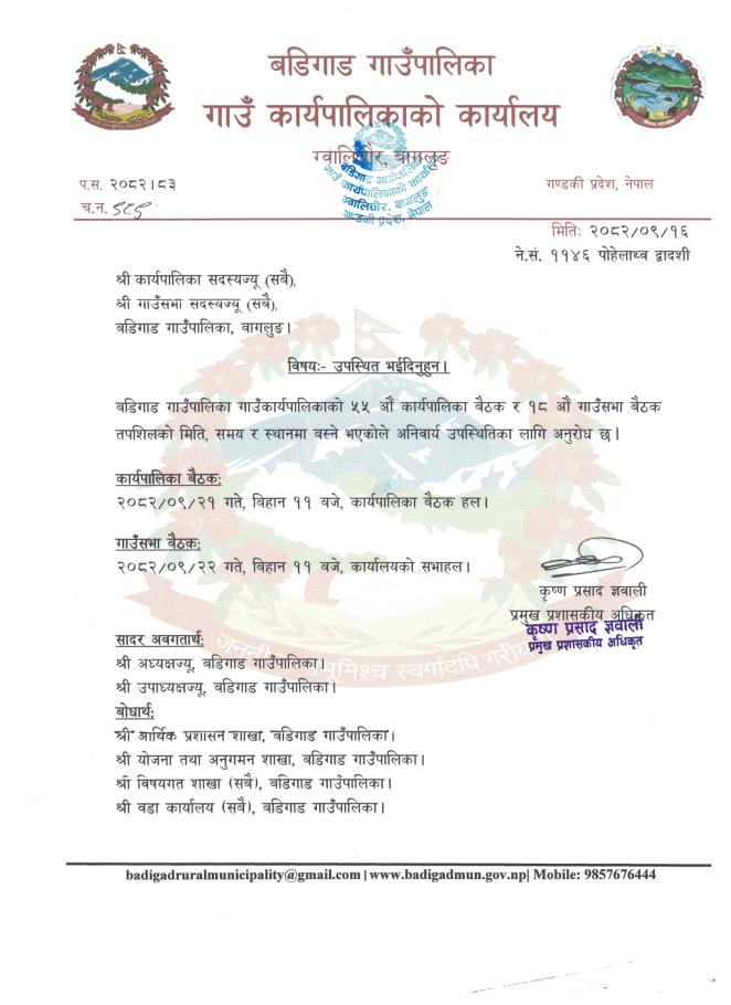 गाउँपालिकाको अत्यन्त जरुरी सुचना