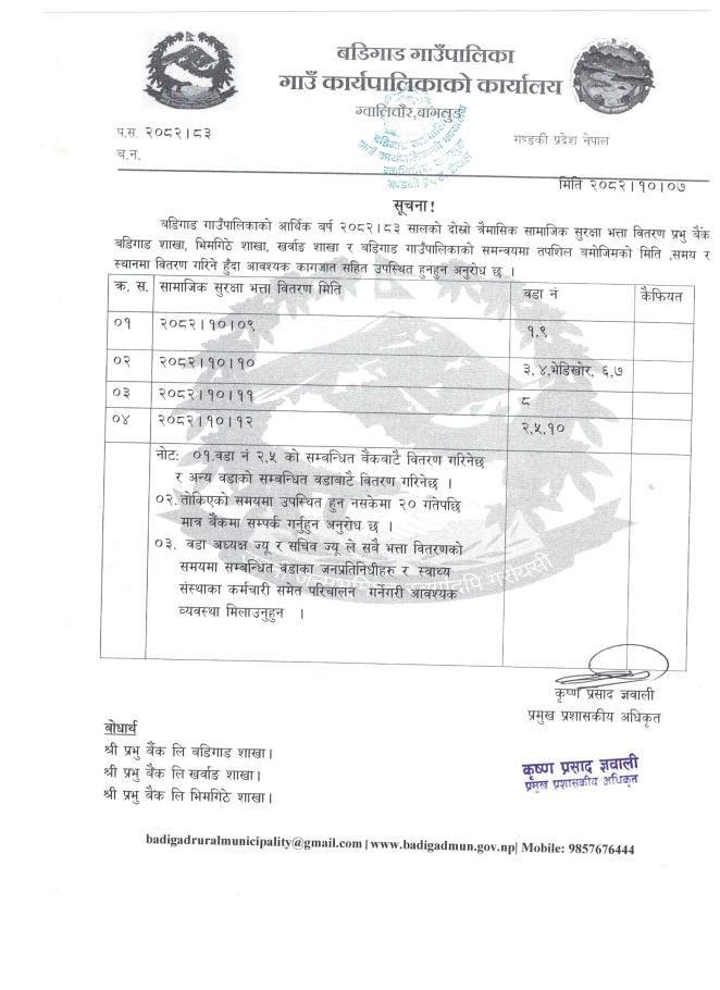 दोस्रो त्रैमासिक सामाजिक सुरक्षा भत्ता वितरण सम्बन्धी सूचना ।