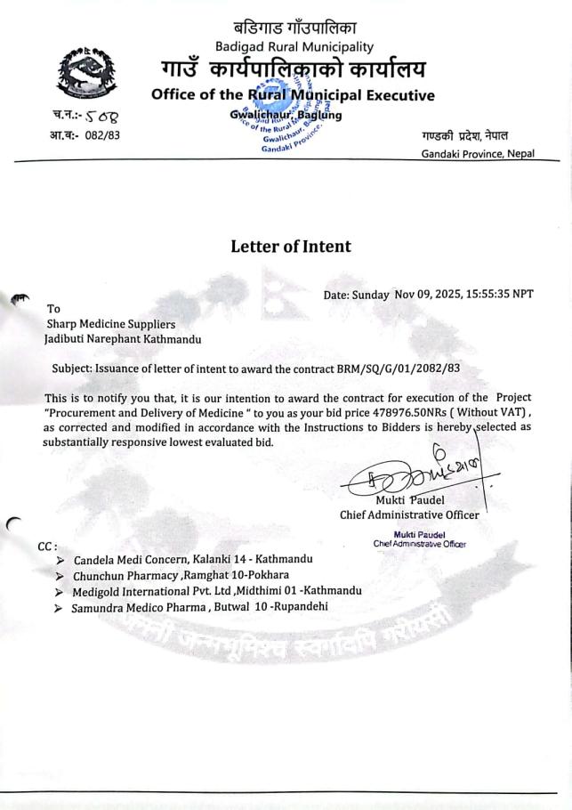 सिलबन्दि दरभाउ पत्र स्वीकृत गर्ने आशयको सूचना।।