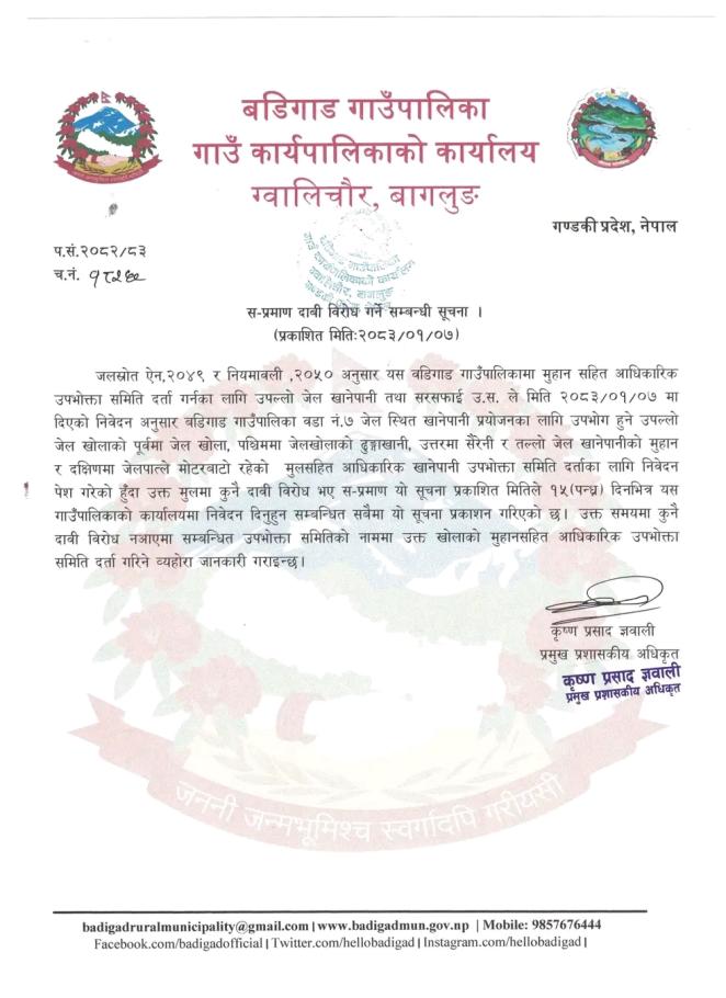स-प्रमाण दाबी विरोध गर्ने सम्बन्धी सूचना ।