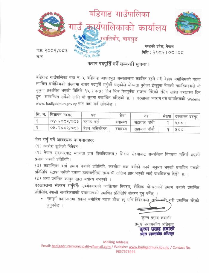 करार पदपूर्ति गर्ने सम्बन्धी सूचना ।