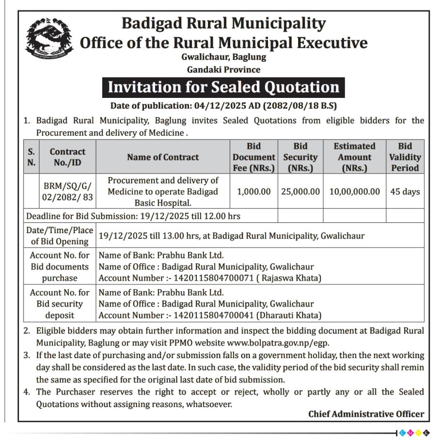 शिलबन्दी दरभाउ पत्र आव्हानको सूचना !!