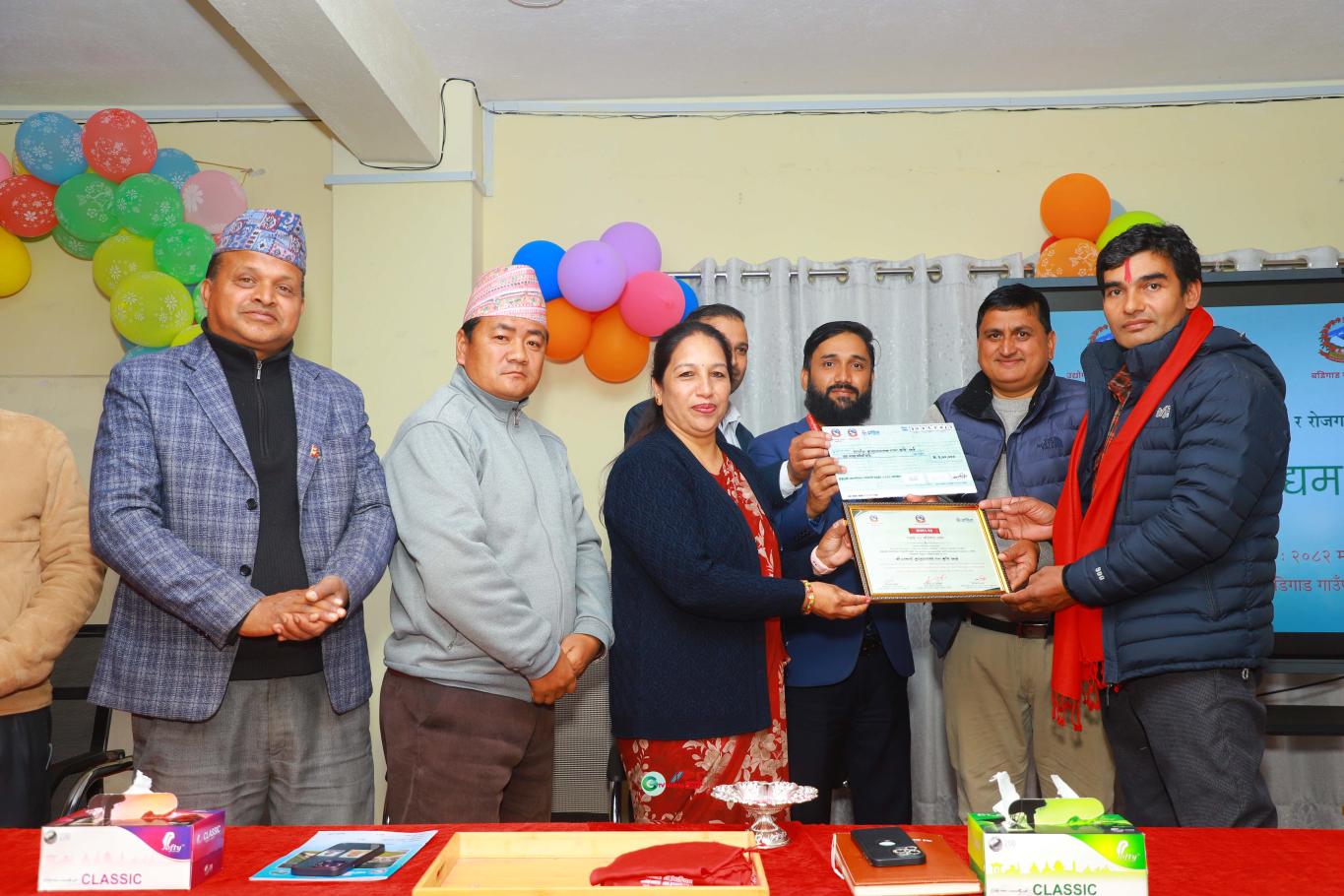 बडिगाड गाउँपालिकाका उत्कृष्ट १० उद्यमी रु १ लाख बराबरको पुरस्कार राशि र प्रमाण सहित पुरस्किृत ।
